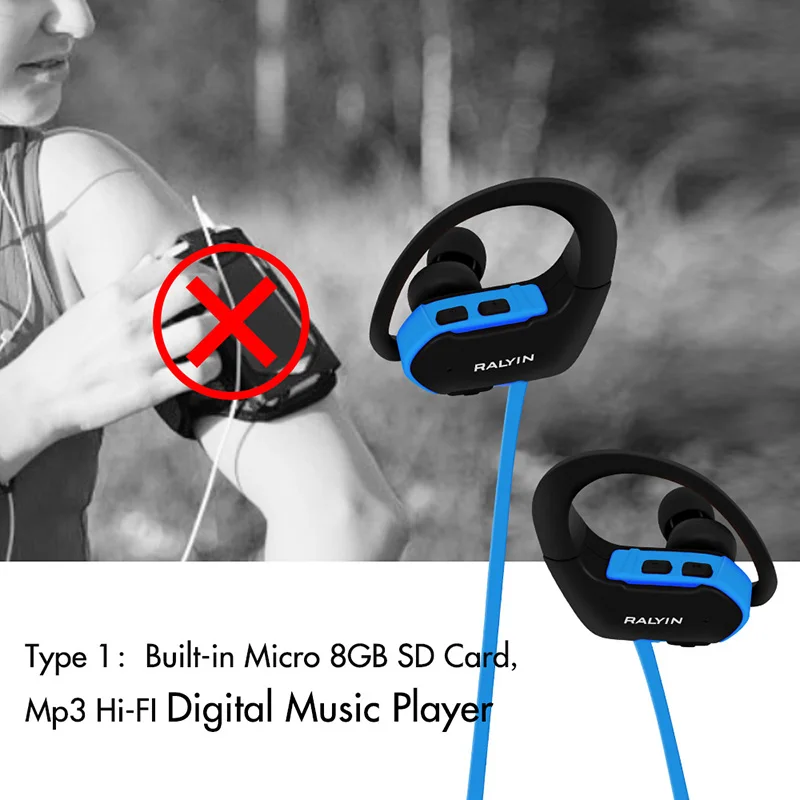 Ralyin portable wearable MP3 music player 8GB headphones player mp3 player headset sport headphones