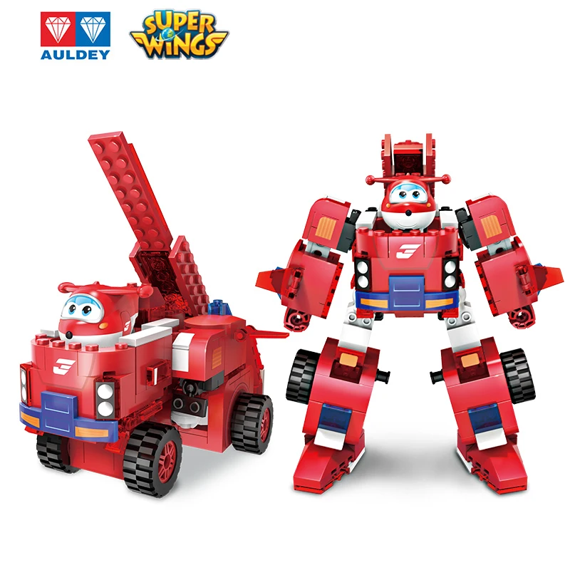 HIGH QUALITY AULDEY Super Wings Small particle building blocks JETT Deformation fire truck/DIZZY rescue vehicle/