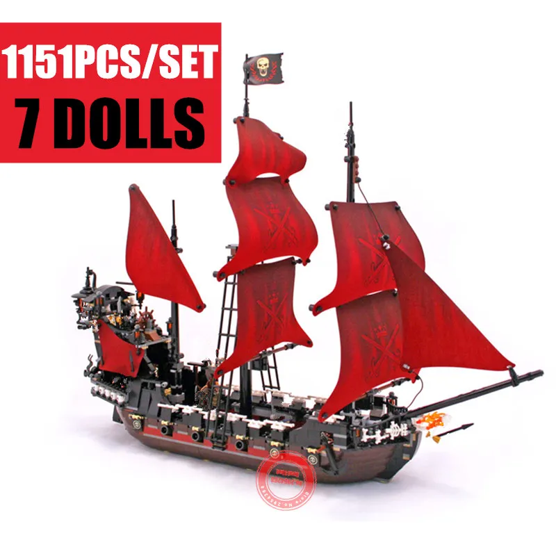 New The Black Pearl Pirates of Caribbean Ship Fit Legoings Pirates Red Ship Building Blocks Bricks